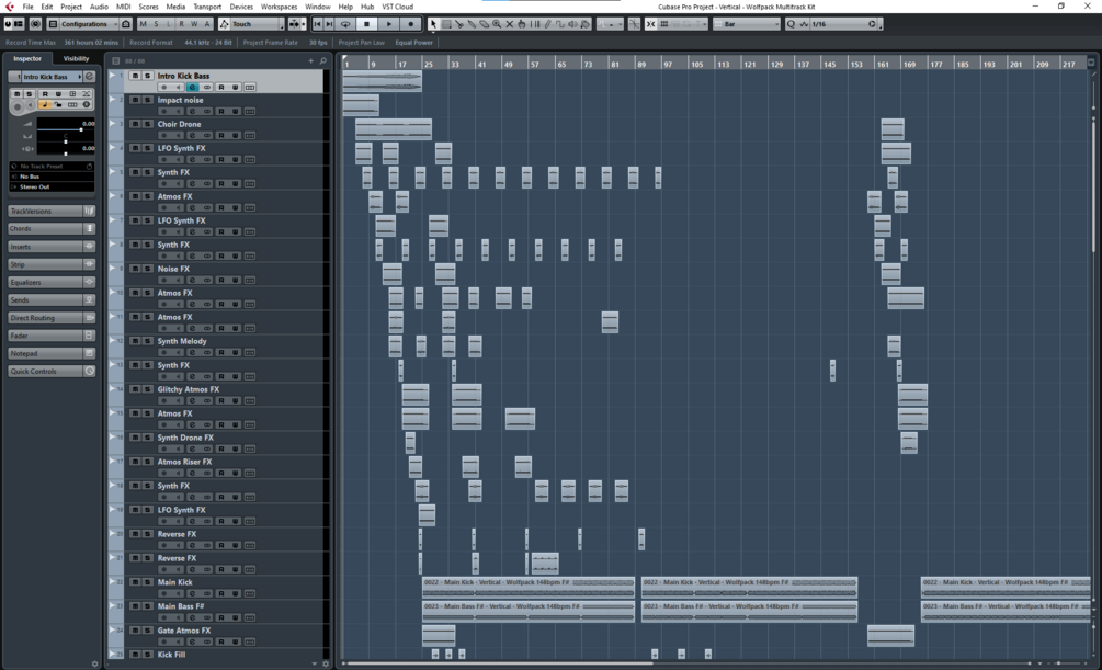 The audio material is as dry as possible: I have removed all delay/reverb/volume ducking/filter effects from where it was possible, so you can process them the way you like. I had printed effects to some audio while producing the track, so obviously they could not be removed.